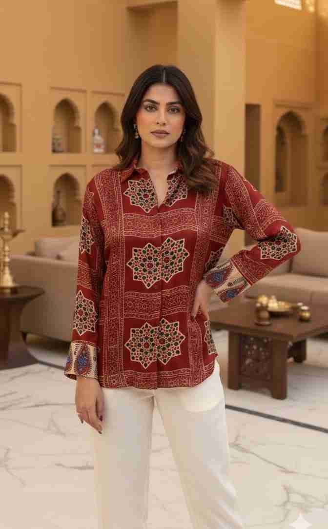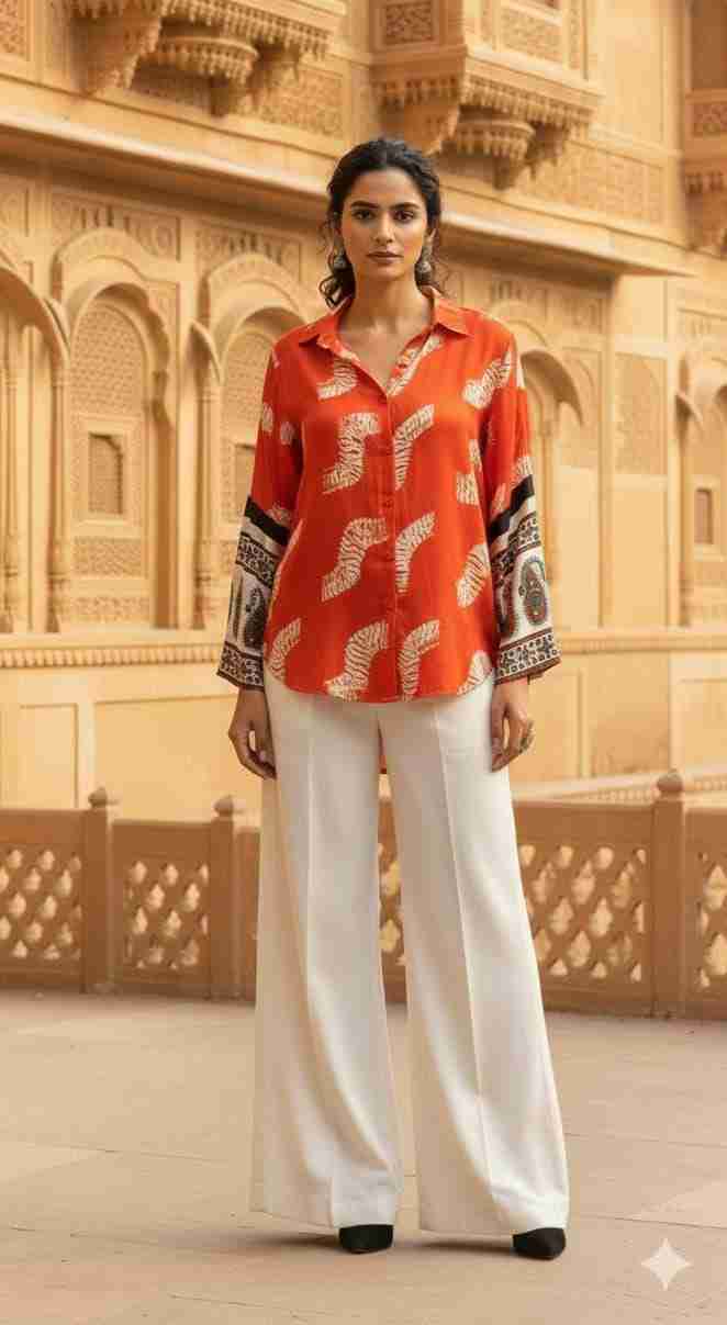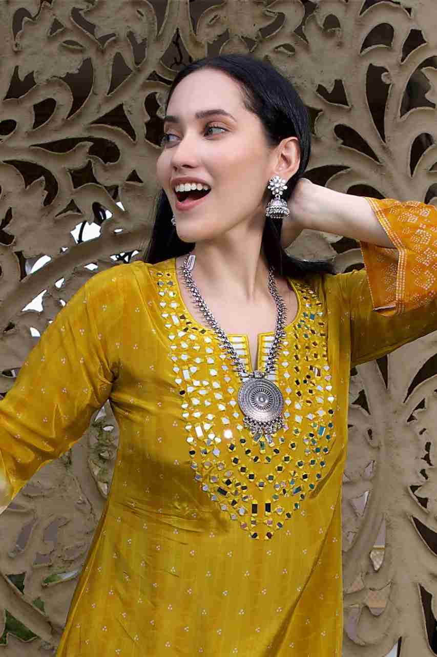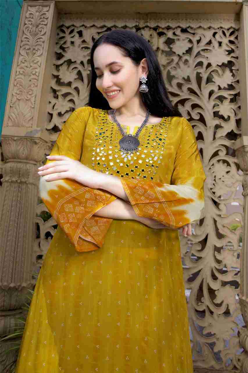 A Hand Tie Dyed Co-ord set on pure Chinon fabric in beautiful vibrant colors with high low shirt and balloon sleeves and flared pant