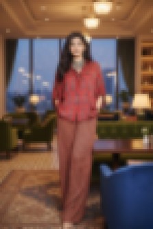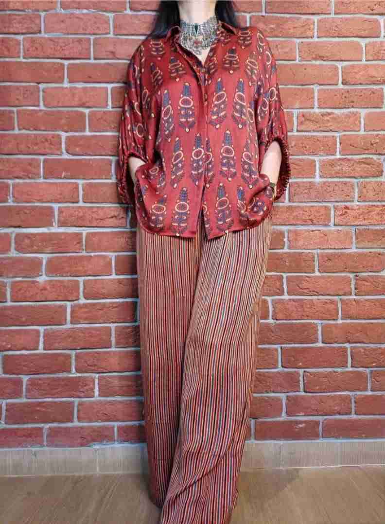Rust Red Geometric Block-Print Shirt LA128
